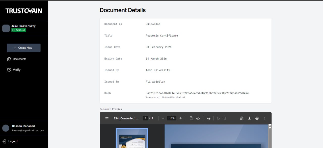 TrustChain turns any official document into instant, verifiable proof.